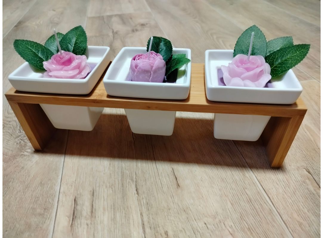 Sada sójových svíček v dřevěném stojanku