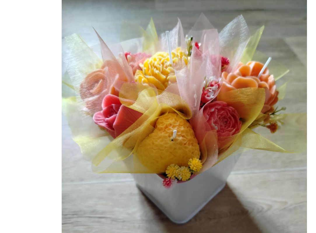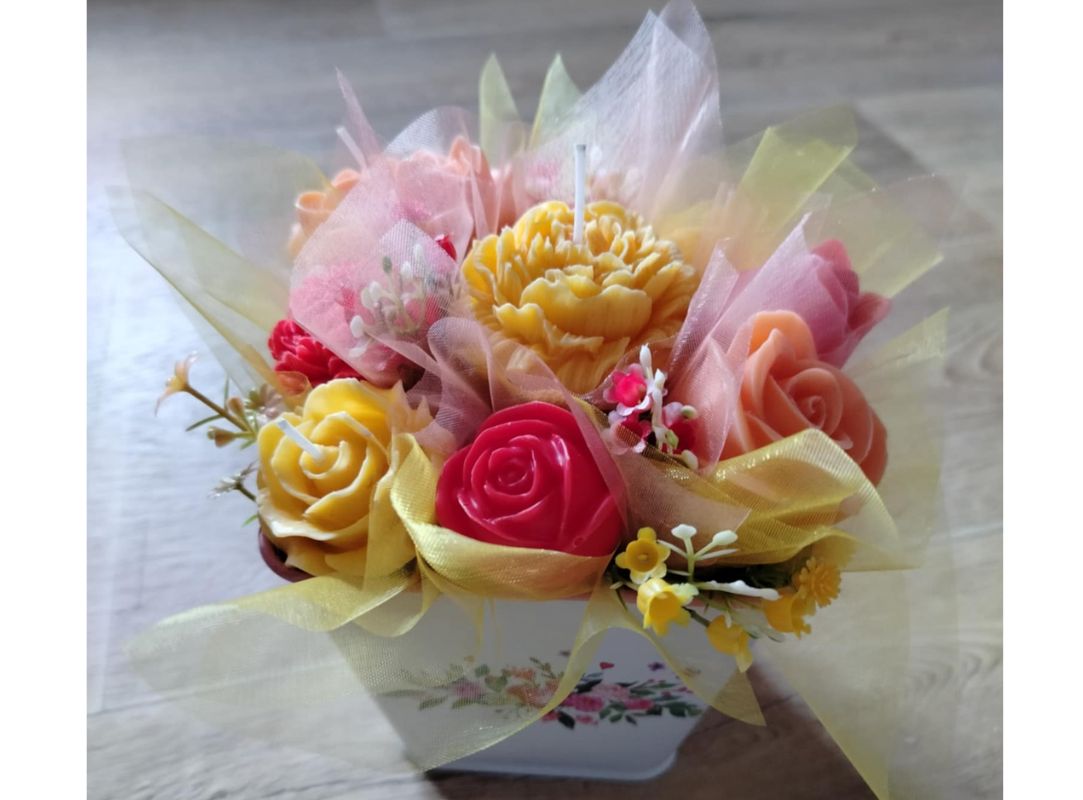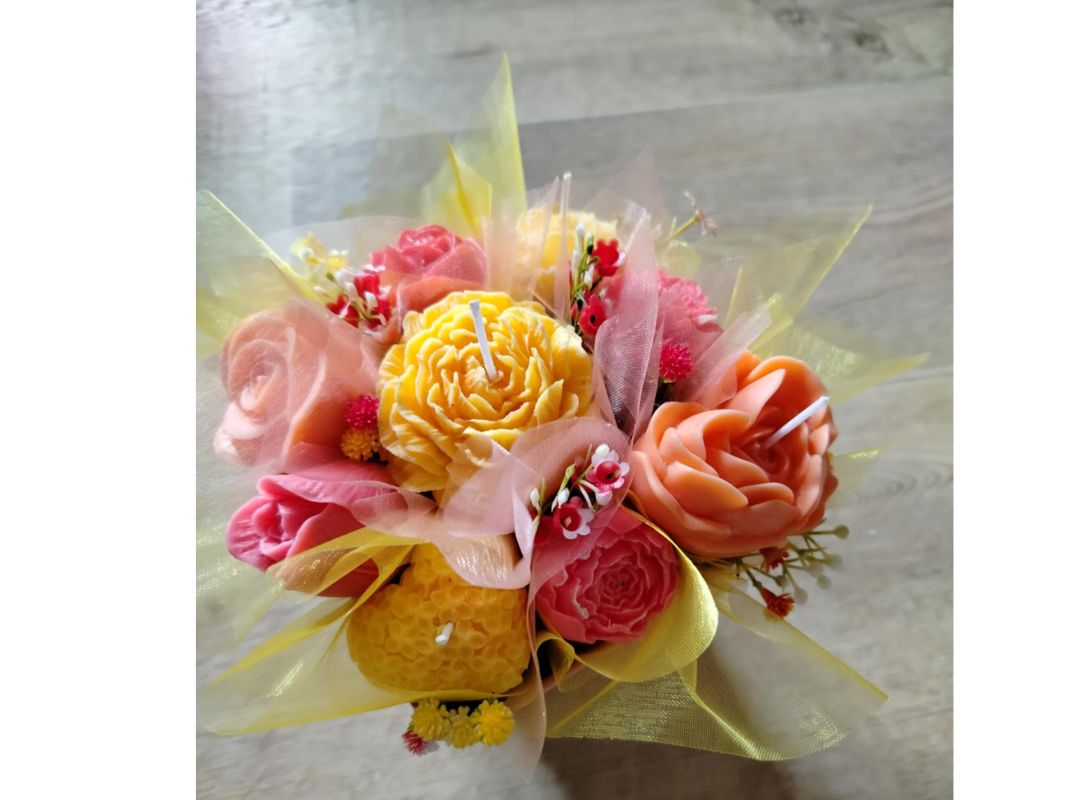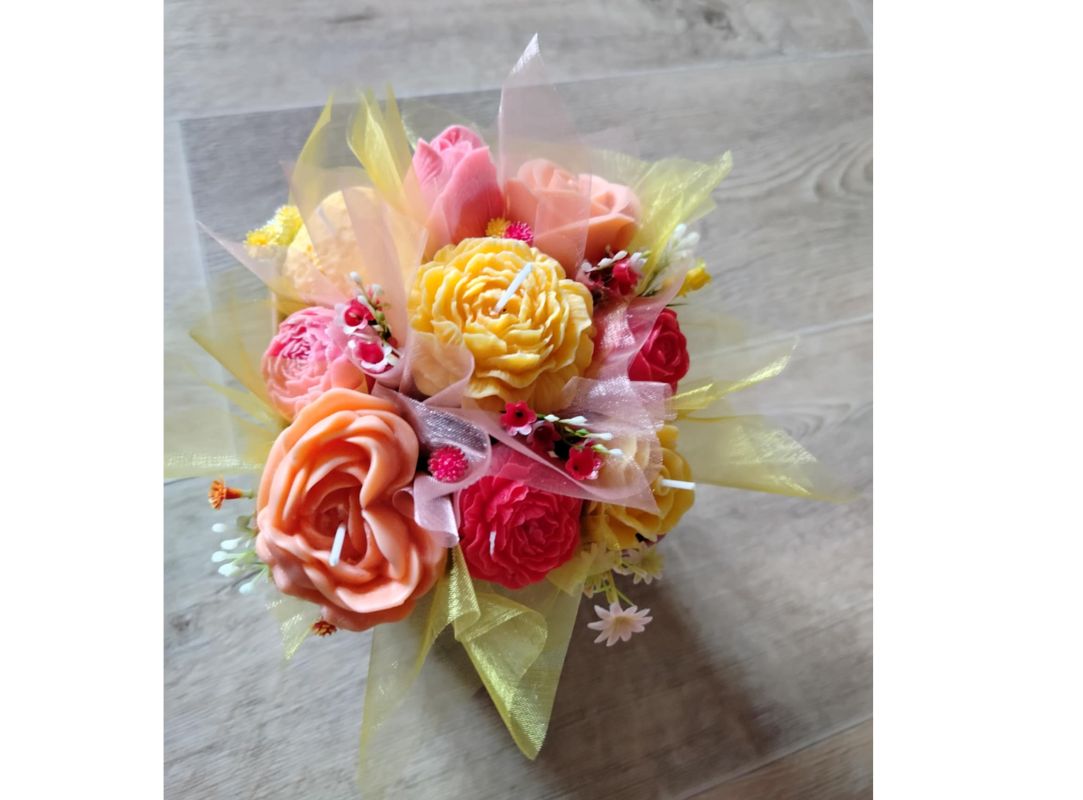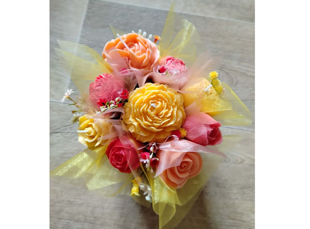 Na zakázku vyrobíme kytici i v jiných barvách. Neváhejte nás kontaktovat e-mailem, přes Facebook nebo telefonicky. Rádi vyrobíme svíčku na zakázku přesně podle Vašich představ.