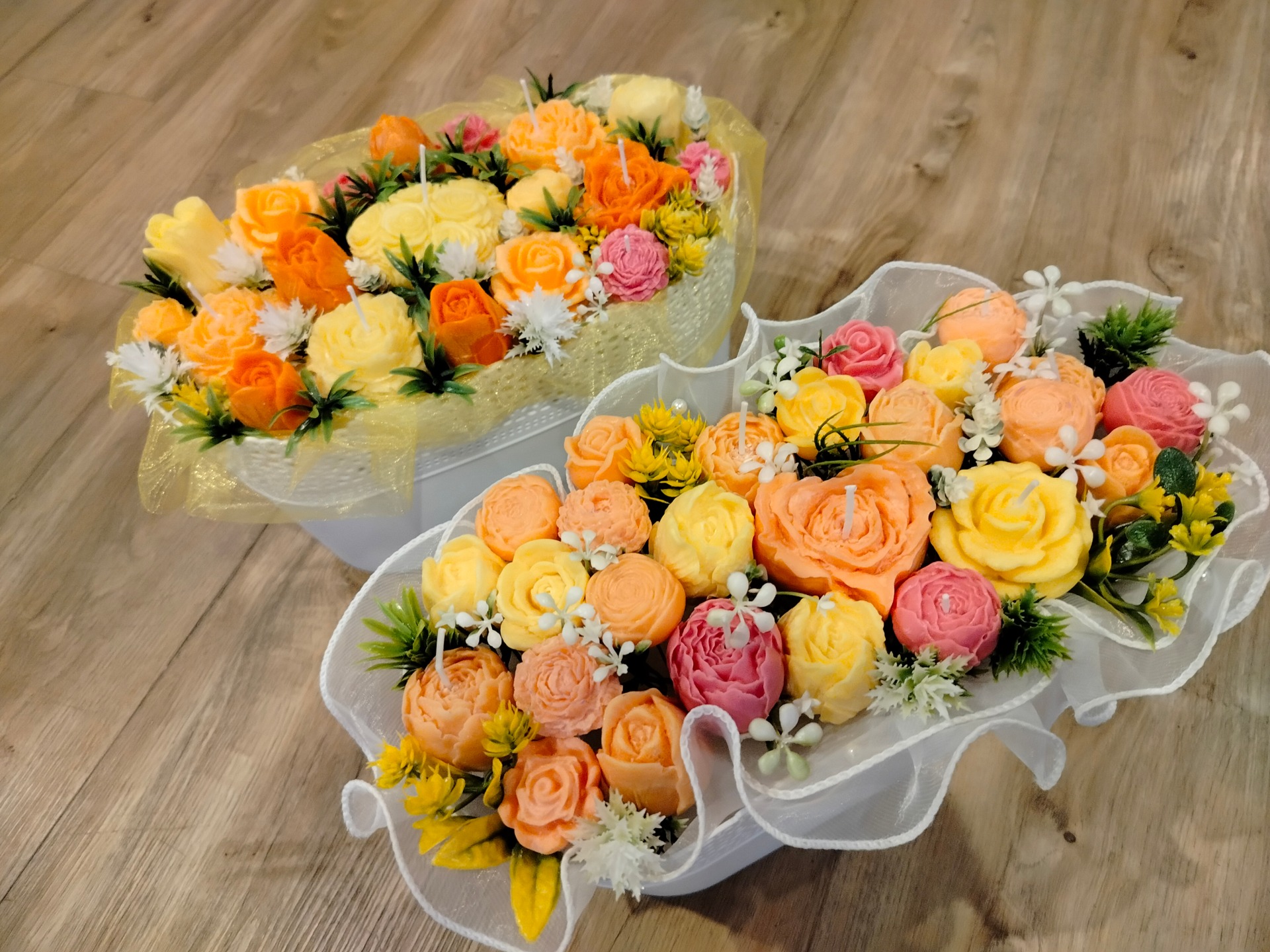 Na zakázku vyrobíme kytici i v jiných barvách. Neváhejte nás kontaktovat e-mailem, přes Facebook nebo telefonicky. Rádi vyrobíme svíčku na zakázku přesně podle Vašich představ.
