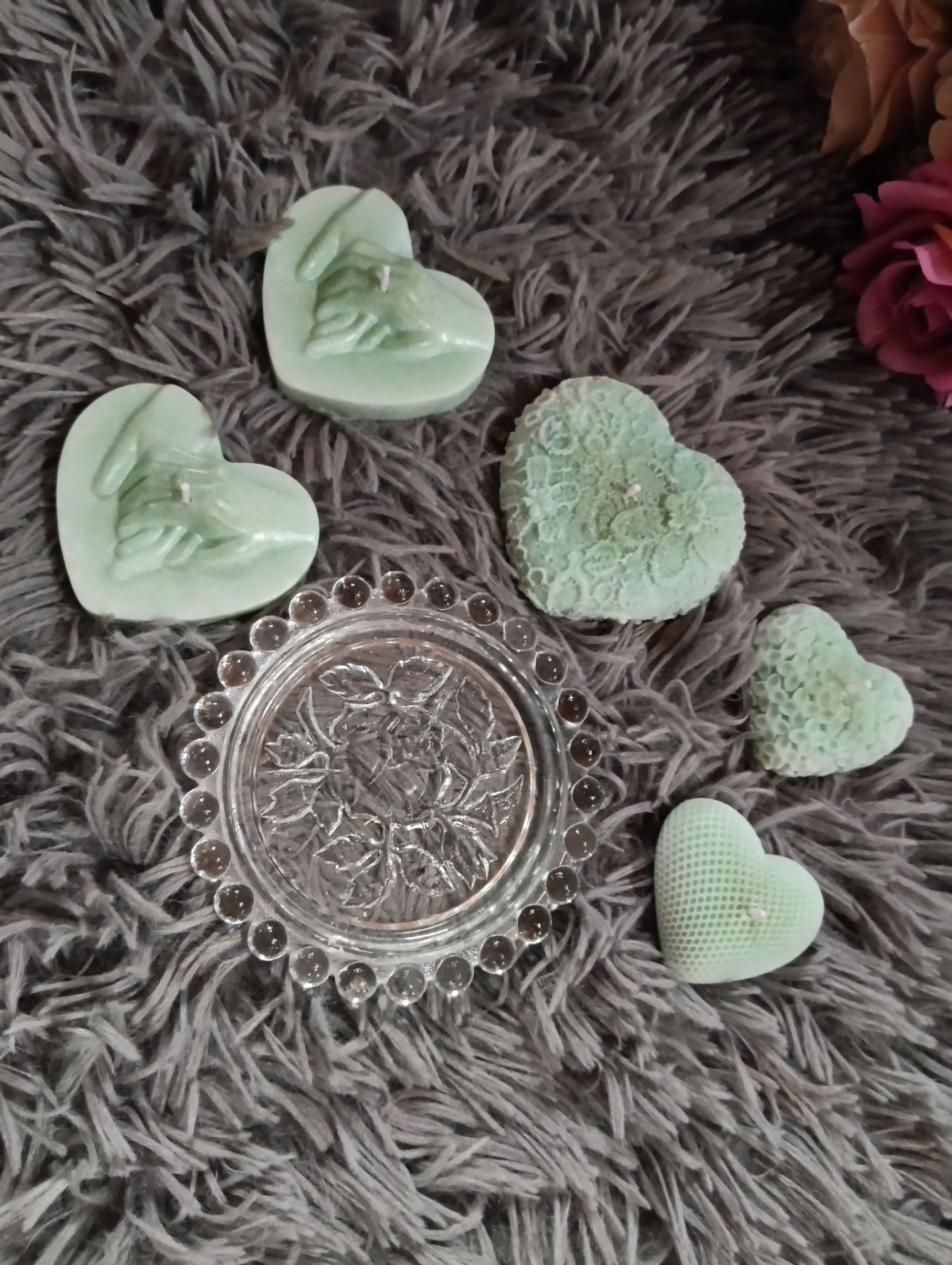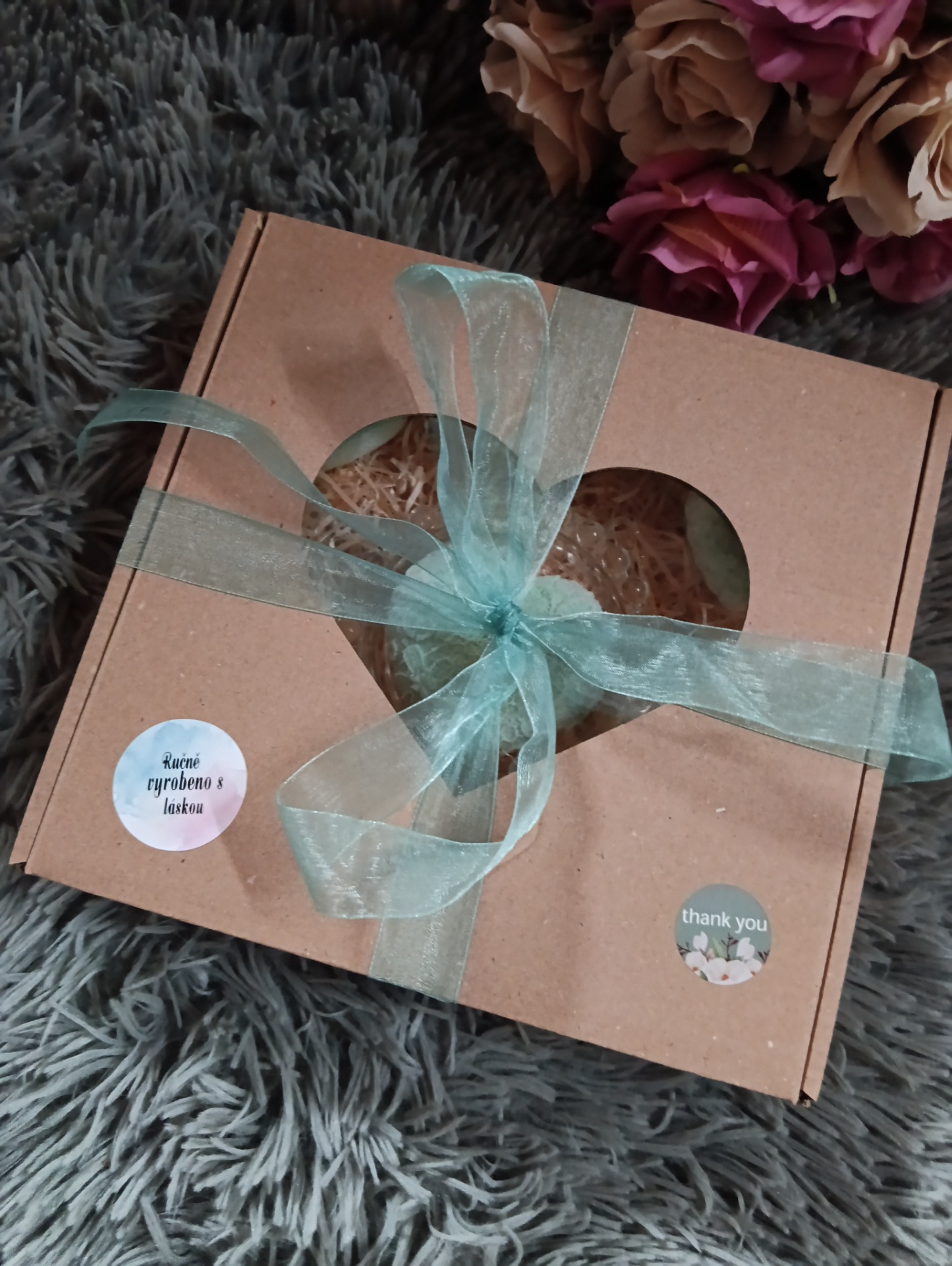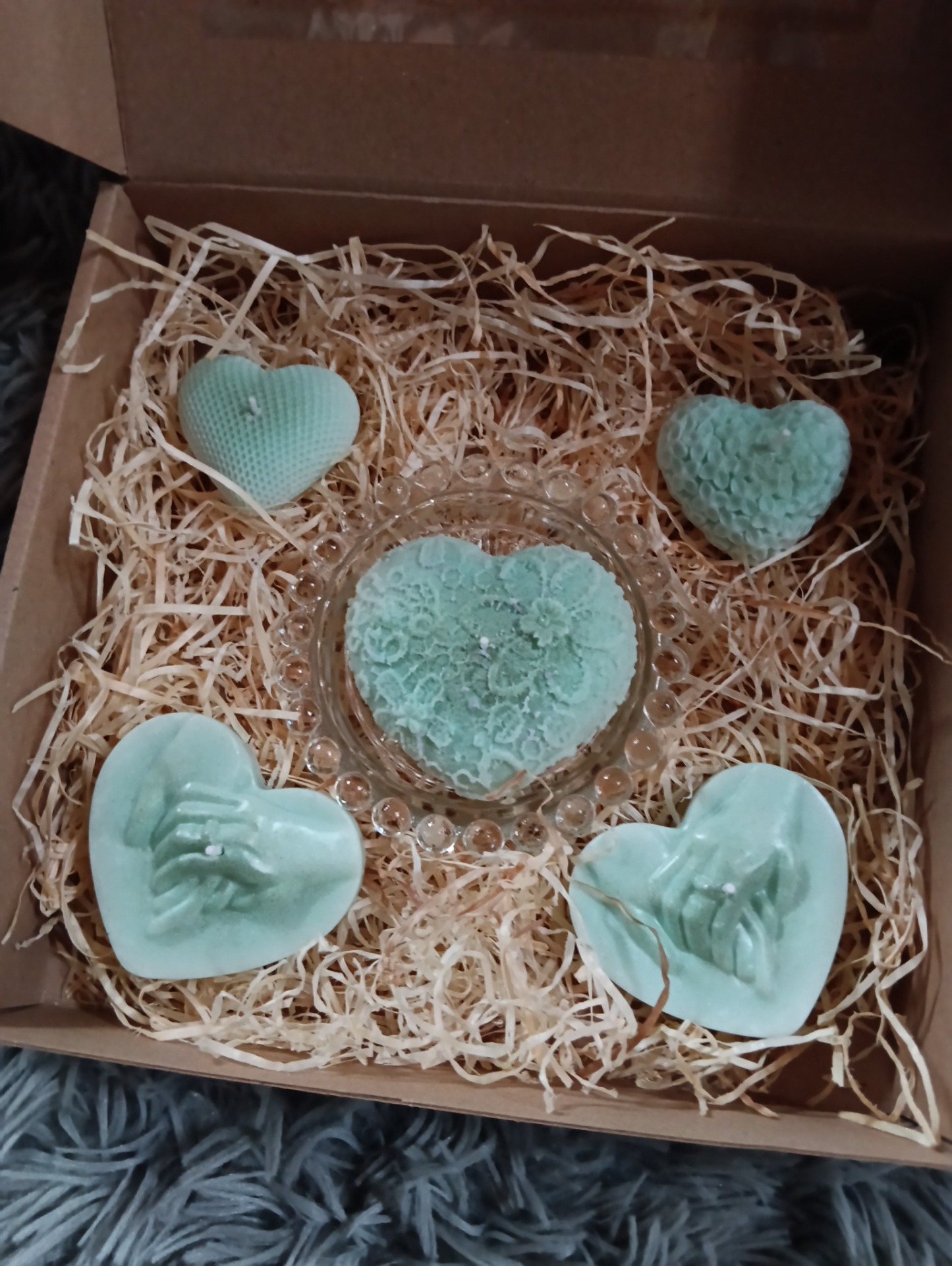 Barva tyrkysová. Jemně a příjemně voní.Cena za celou sadu.Ručně vyrobeno s láskou.Dárkové balení.