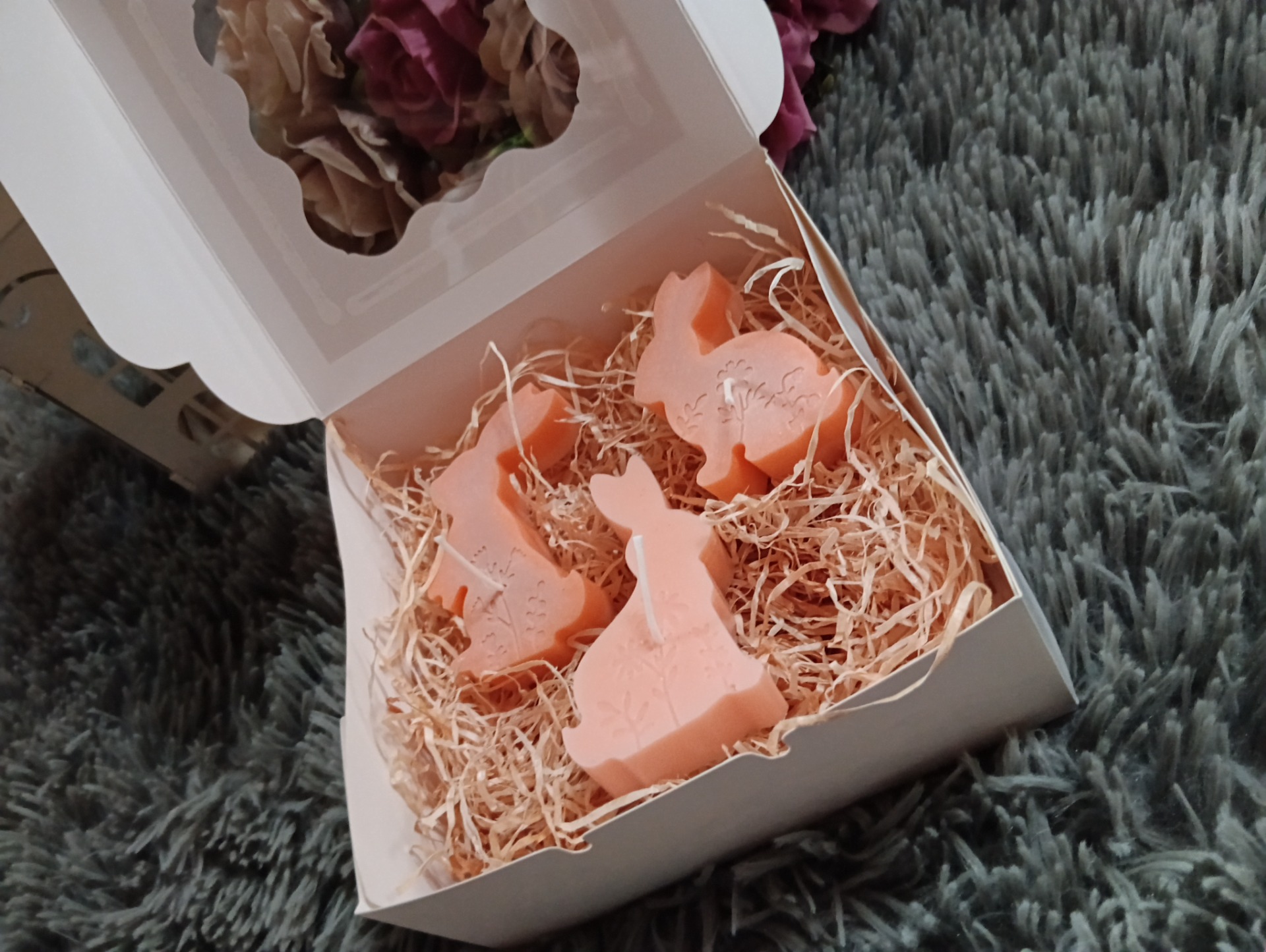 Barva meruňková.Cena za celou sadu 3 zajíčků.
