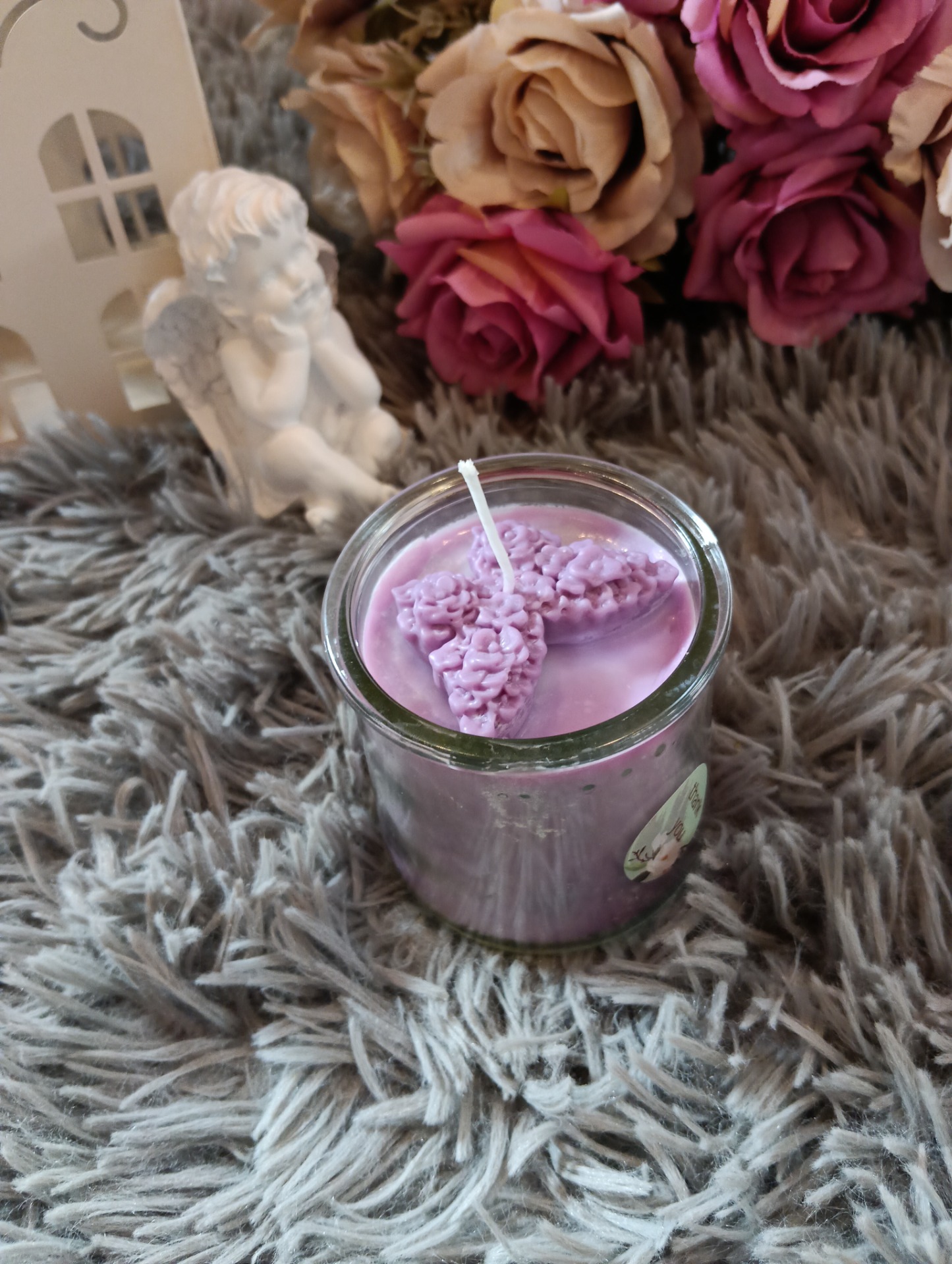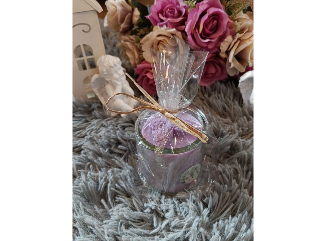 Sójová svíčka ve skle - fialová - motýl