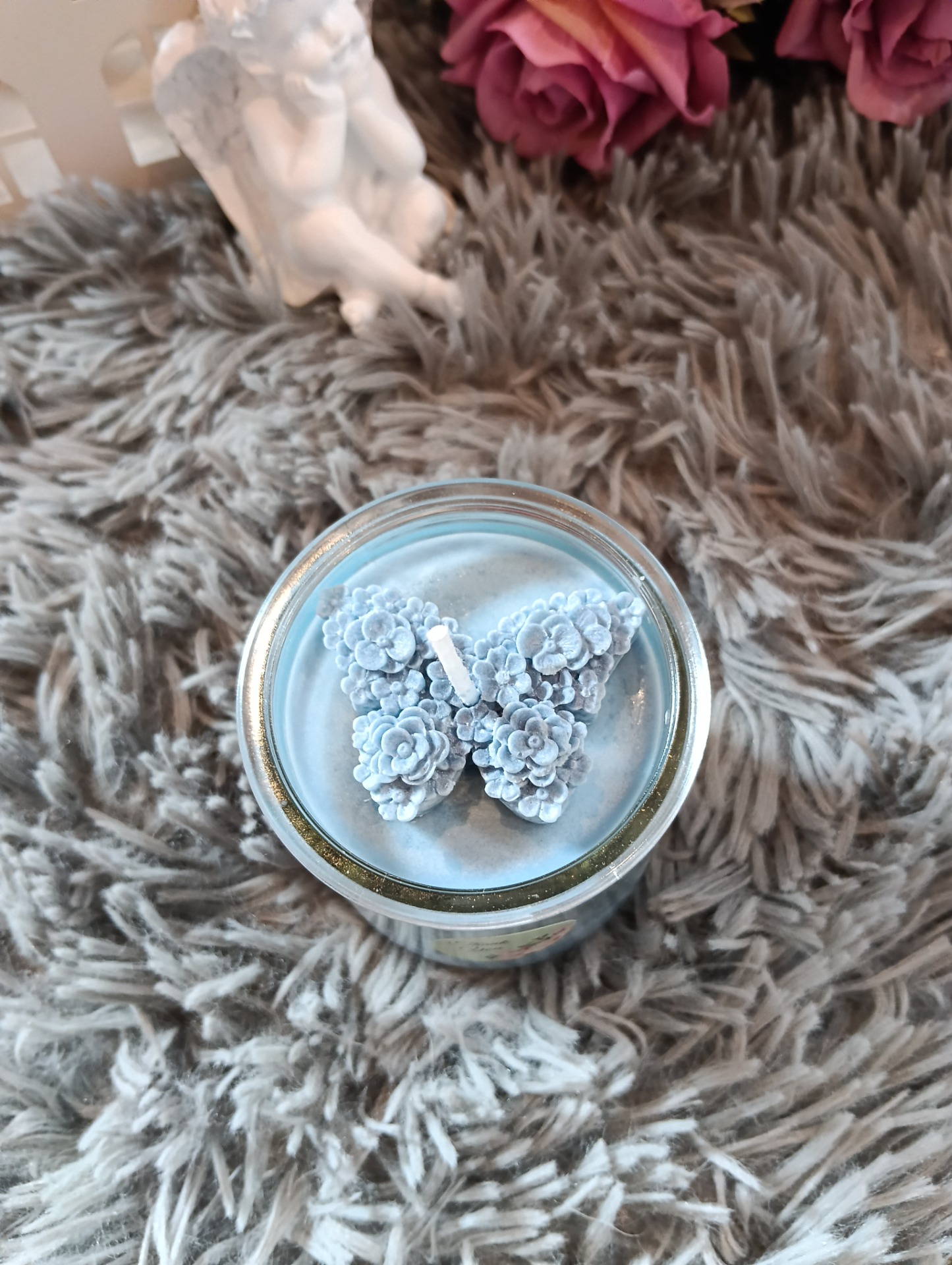 Sójová svíčka ve skle - modrá - motýl