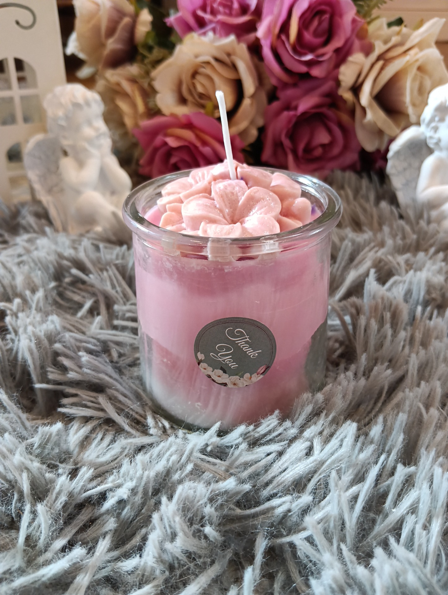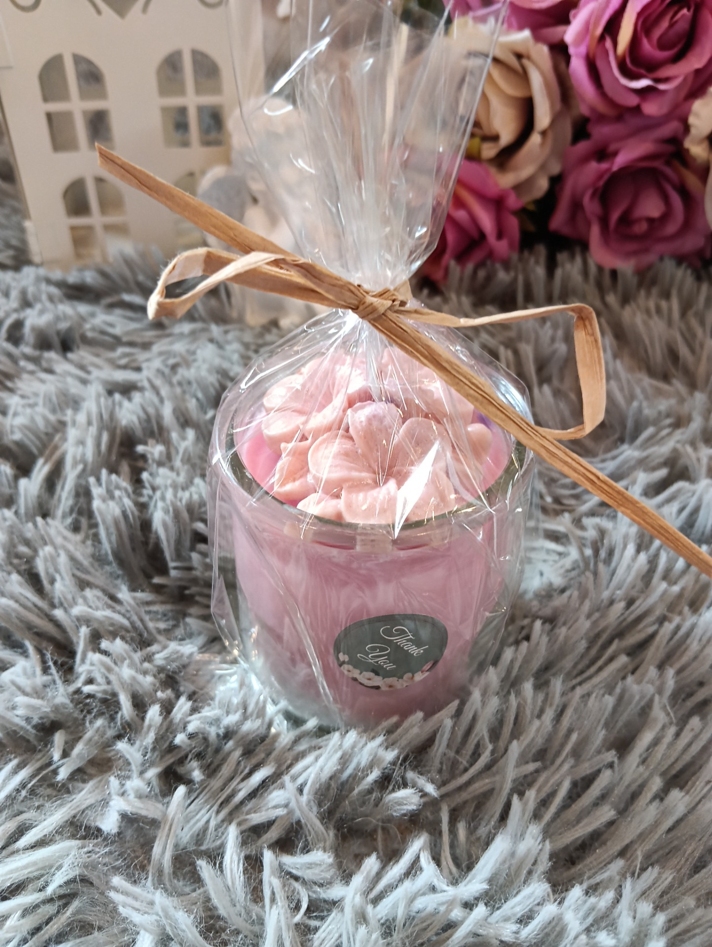 Sójová svíčka ve skle - růžová - květy