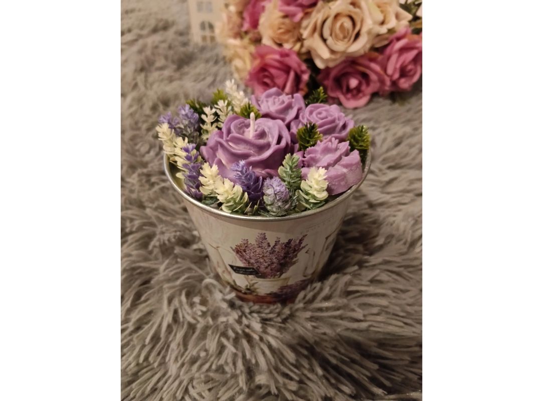 Sójová svíčka Dekor Levandule v elegantním kovovém obalu vnese do vašeho domova klidnou a harmonickou atmosféru. Přírodní sójový vosk zajišťuje čisté a dlouhé hoření, zatímco jemná levandulová vůně pomáhá uvolnit mysl i tělo. Stylové balení je praktické i dekorativní – ideální jako dárek nebo doplněk do interiéru.