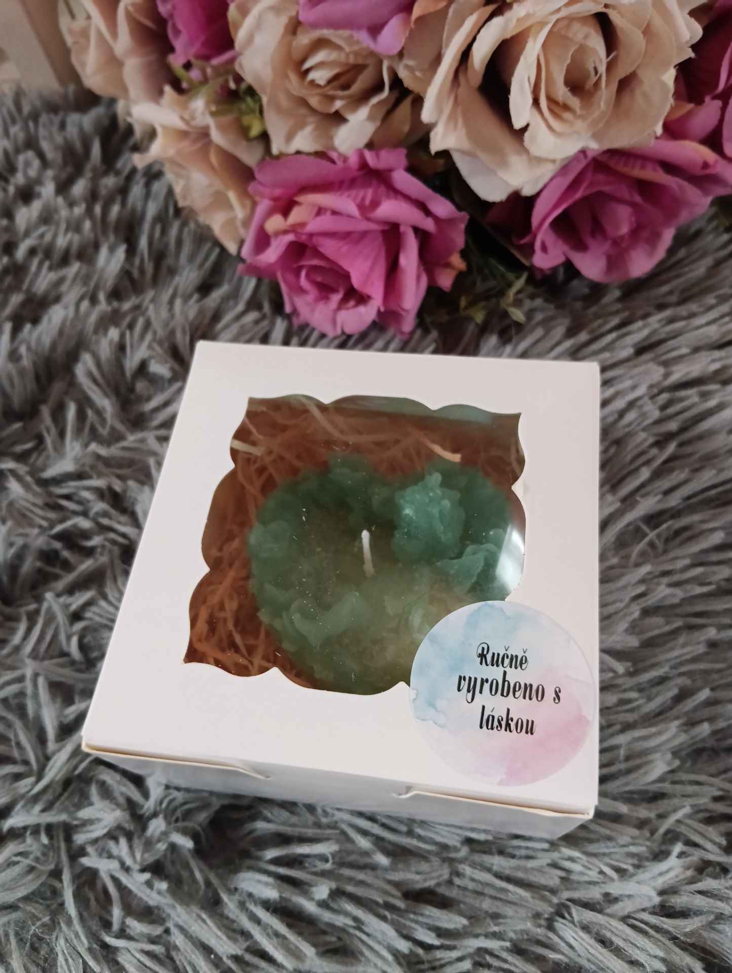 Velká svíčka ze sojového vosku.Jemně a krásně voní.Barva: zelená