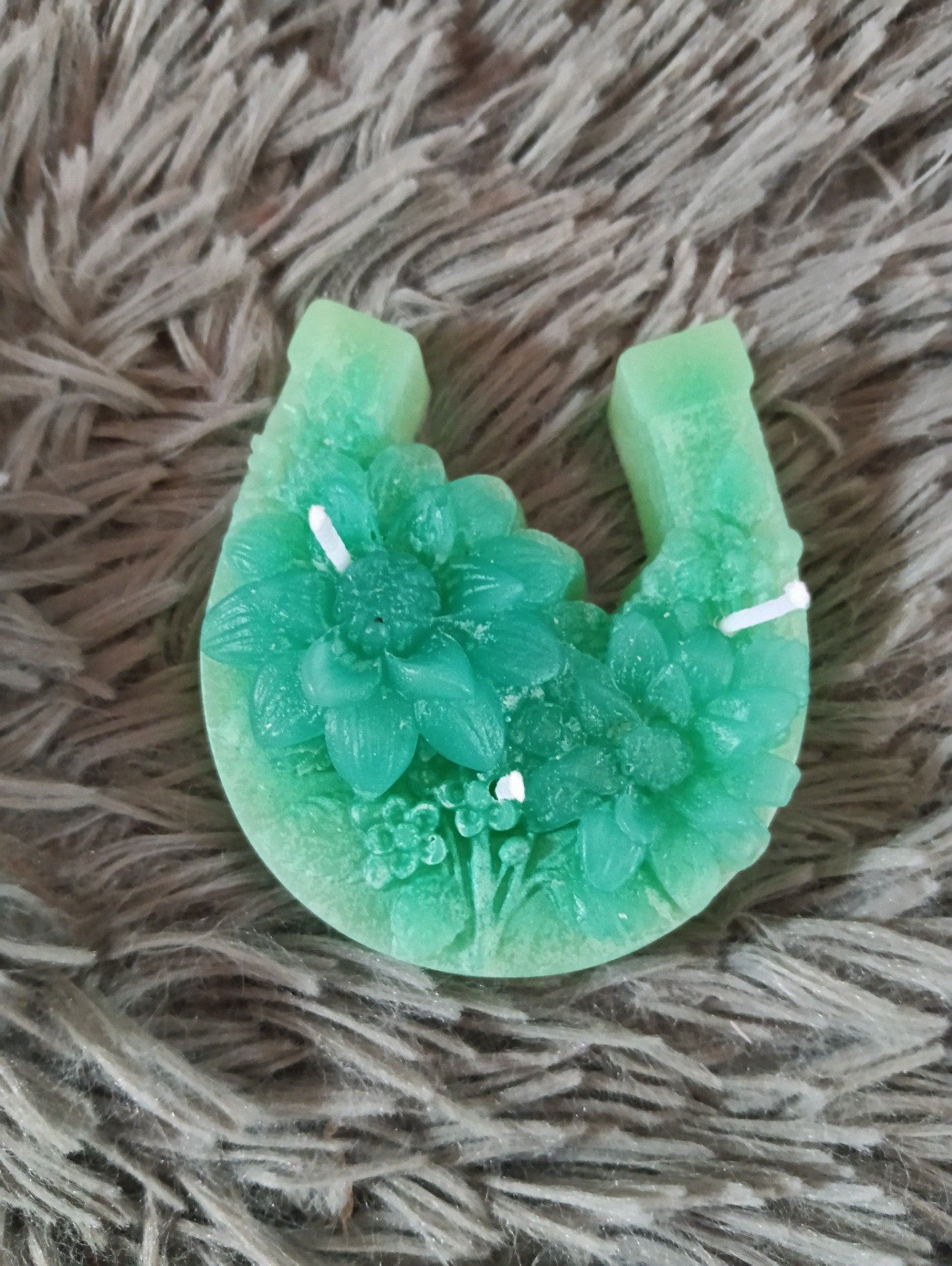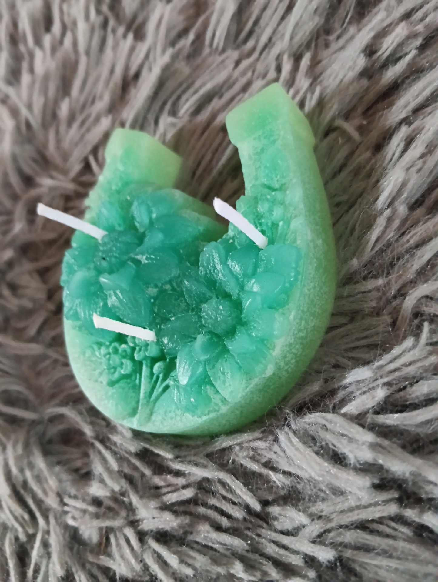 Velká svíčka ze sojového vosku podkova.Jemně a krásně voní.Barva: zelená