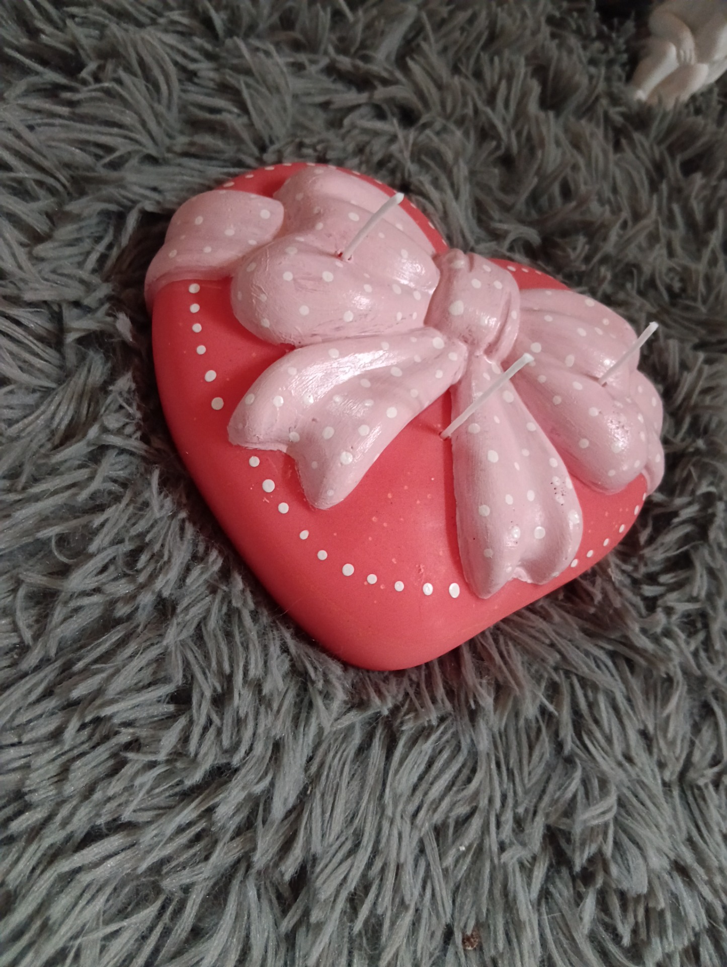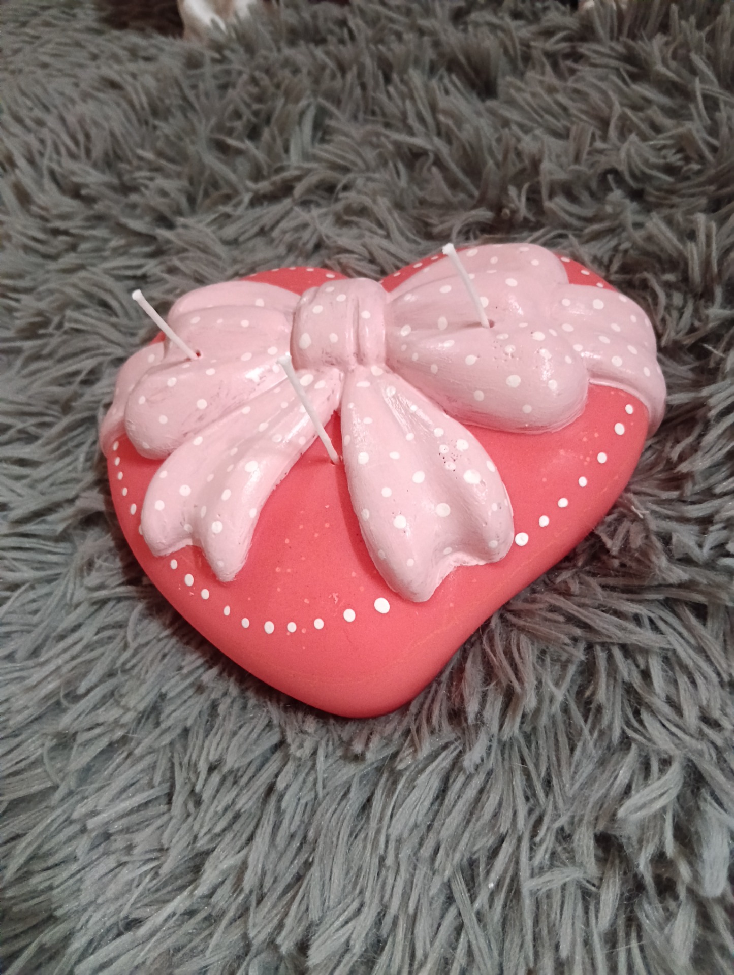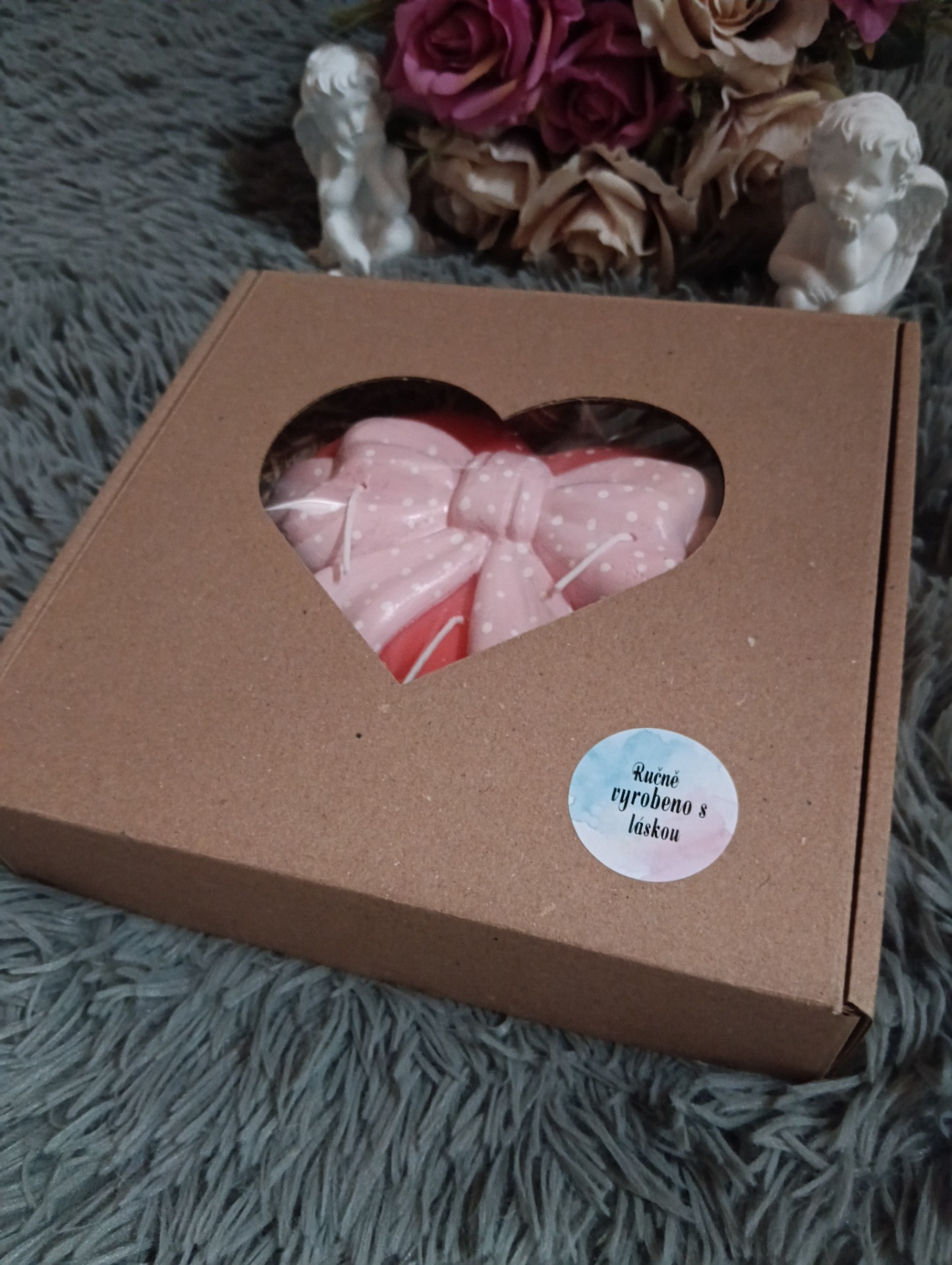 Velká svíčka ze sojového vosku srdce, dekorovaná.Barvy: růžová.