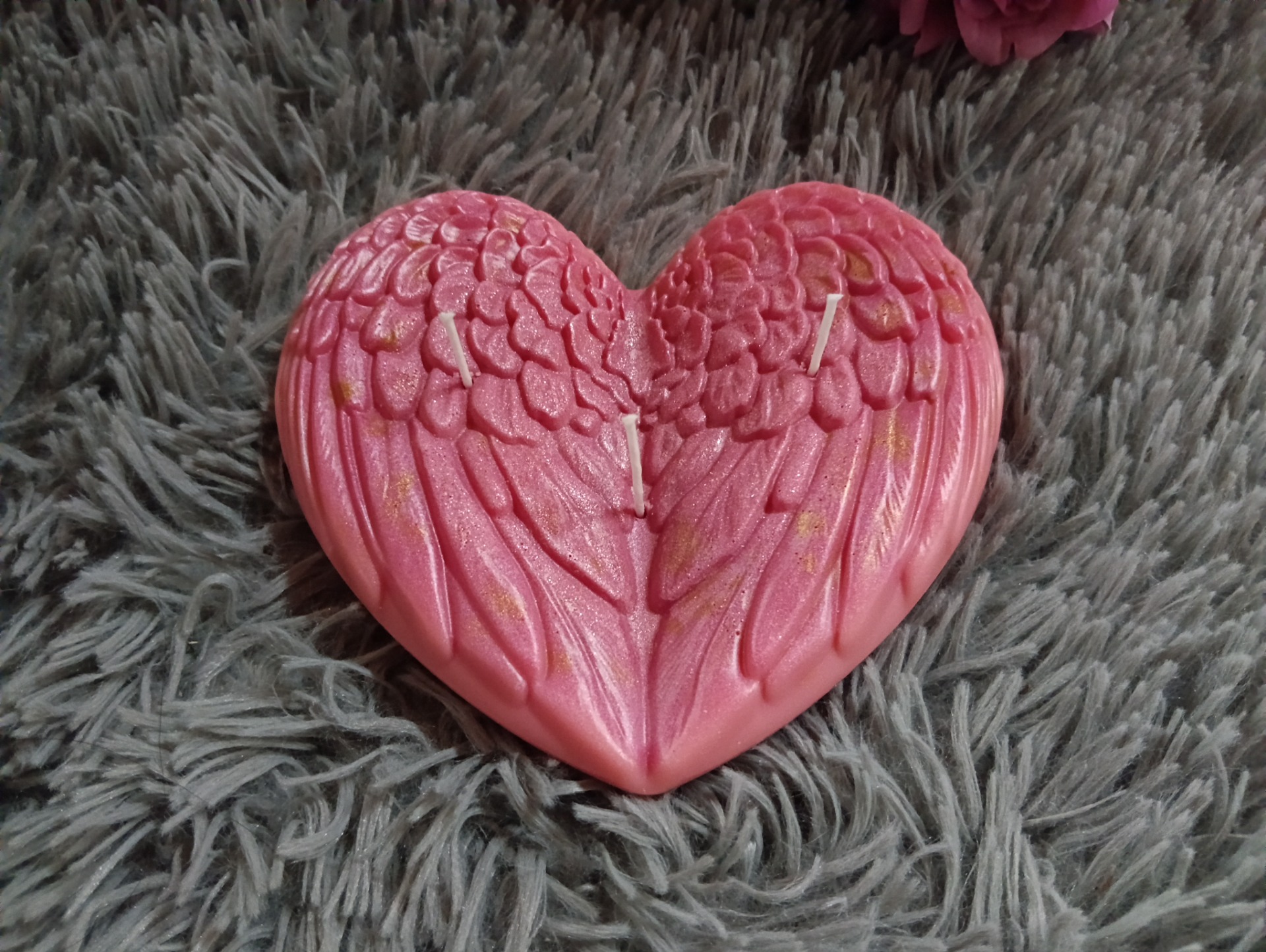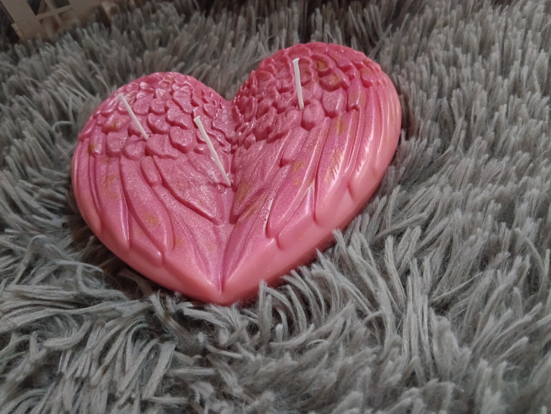 Velká svíčka ze sojového vosku srdce, dekorovaná.Barvy: růžová.