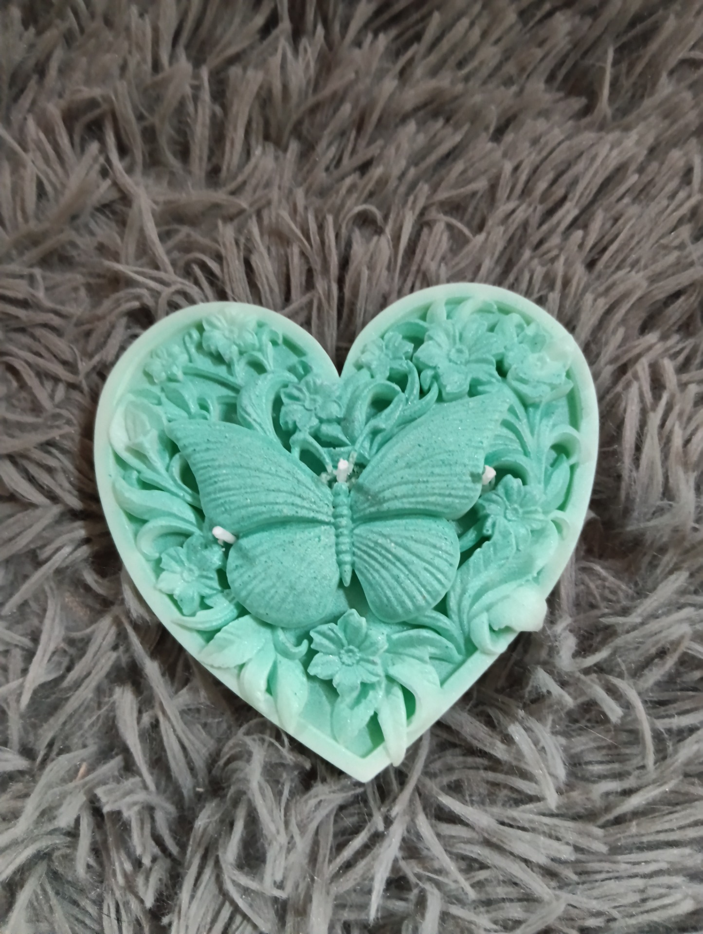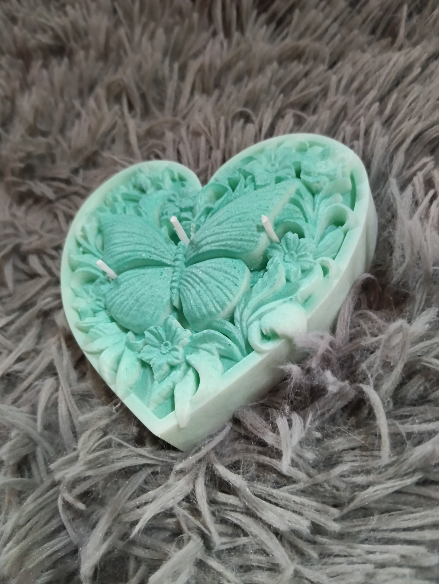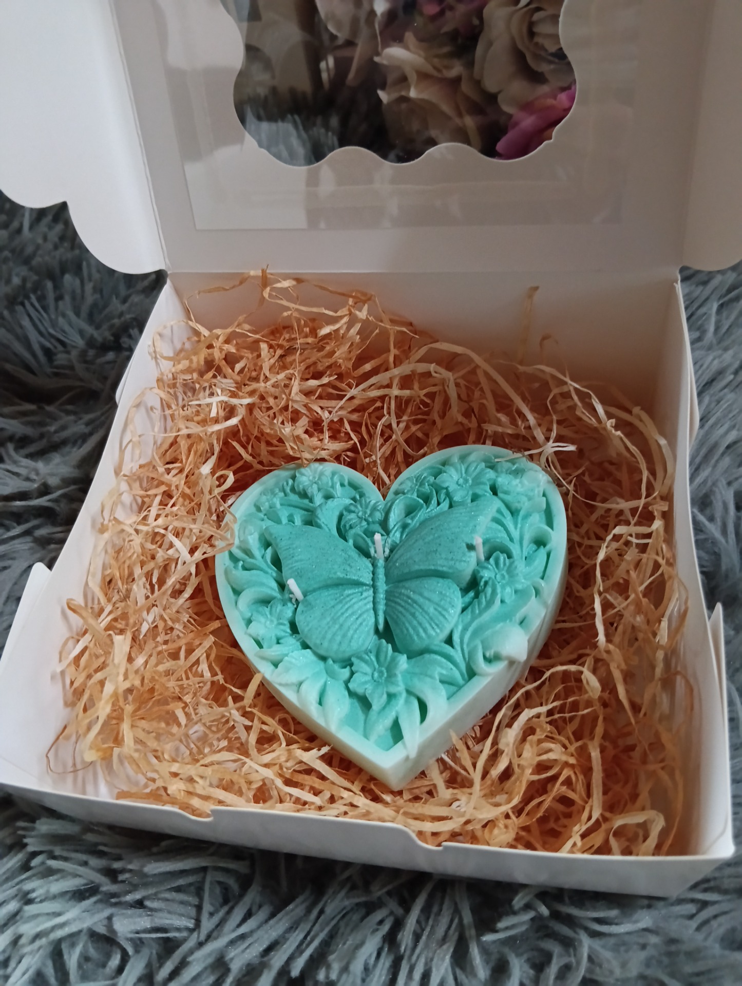 Velká svíčka ze sojového vosku srdce, dekorovaná. Jemně a krásně voní.Barva: tyrkysová.