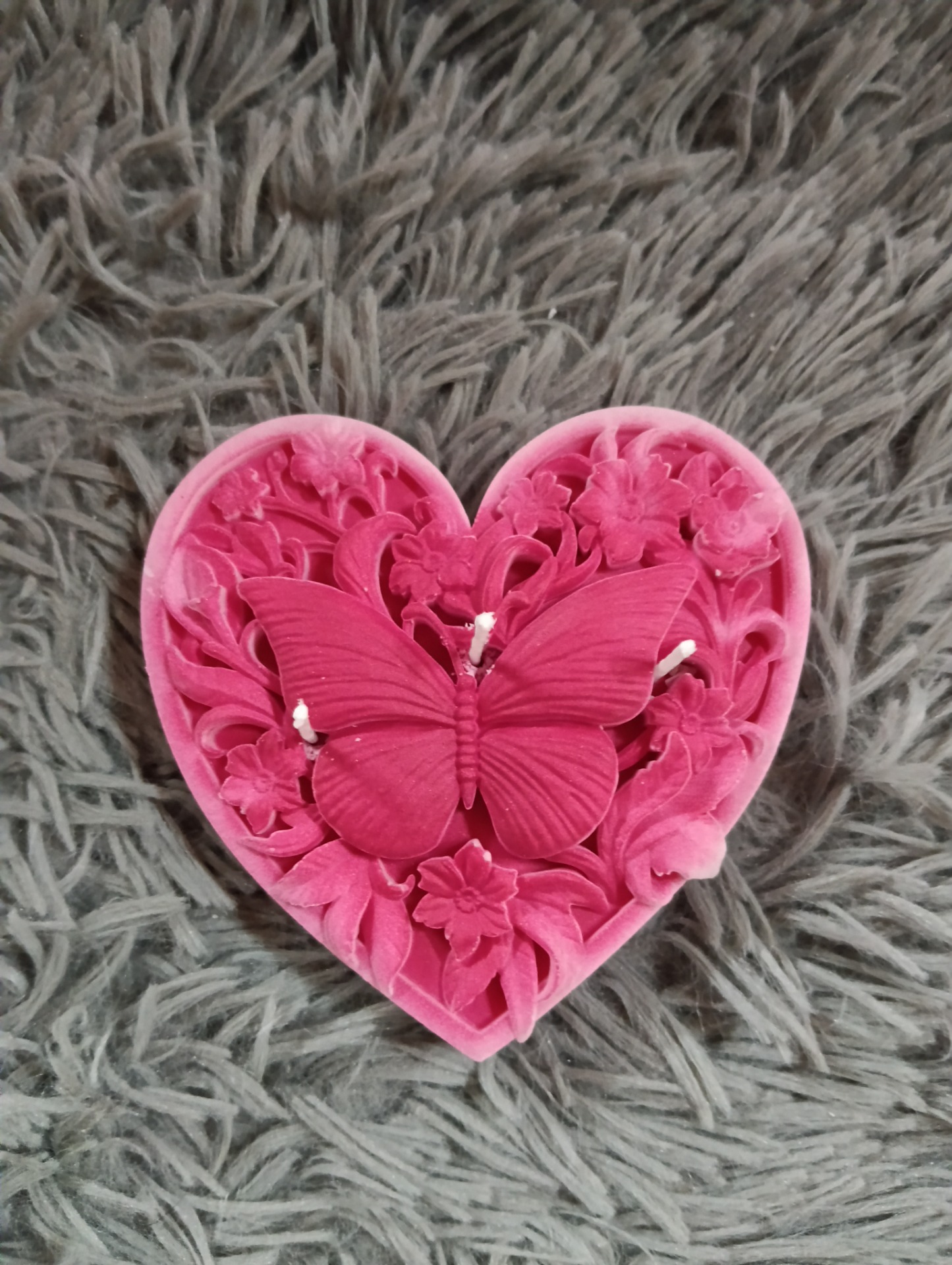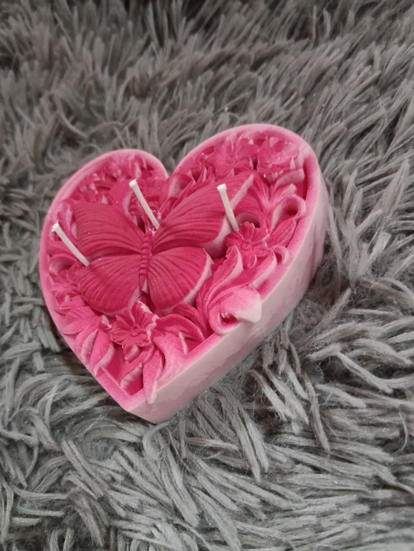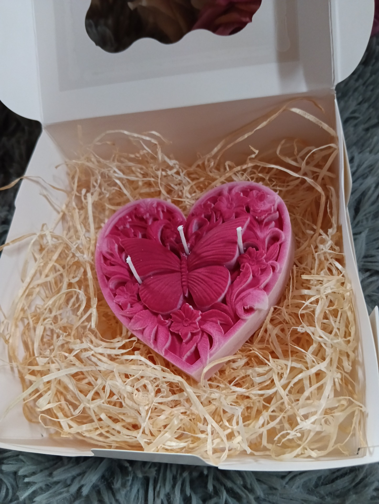 Velká svíčka ze sojového vosku srdce, dekorovaná. Jemně a krásně voní.Barva: růžová.